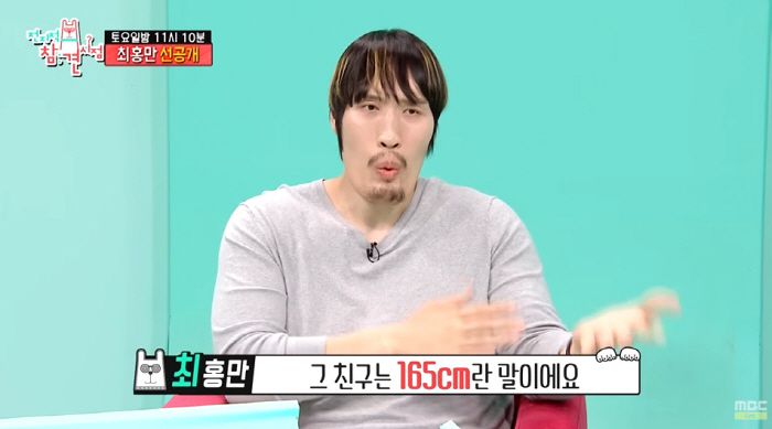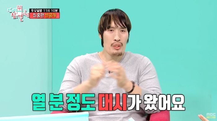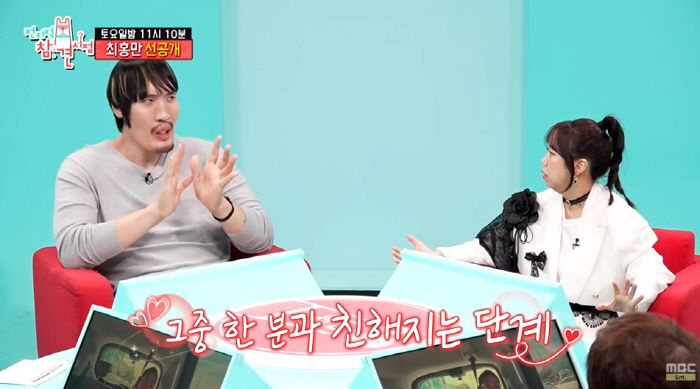 최홍만은 "유튜브에서 이상형을 공개했다. 이후 열 분 정도의 대시가 왔다"면서 "그 중 한번과 친해지는 단계다"며 솔직하게 밝혔다. 이어 그는 "그 분이 본인 키를 더 강조해달라고 하더라. 이상형을 168cm라고 했는데 그 친구 키는 165cm다. 그래서 그 부분을 바꿔달라고 하더라"고 했다. 이에 전현무와 송은이는 "그린라이트다", "적극적인 거다"고 해 최홍만을 웃게 했다.