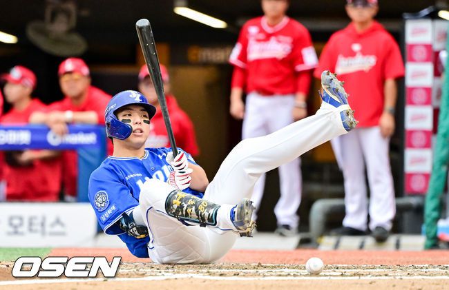 6회초 1사 삼성 김영웅이 헛스윙 후 쓰러지고 있다. 2025.10.11 / soul1014@osen.co.kr