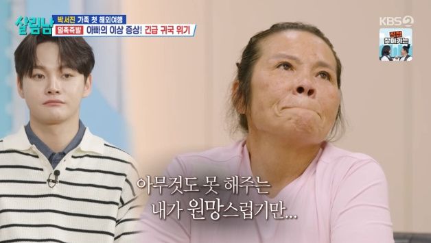 뒤늦게 주저앉은 아버지를 본 어머니는 "아프면 이야기를 해야지"라고 말했고, 아버지는 "나는 괜찮다. 너희만 좋으면 됐지"라고 웃었다. 이에 어머니는 "나는 푼수같이 신랑 아픈것도 모르고.."라고 안타까워 했고, 박서진 역시 "부모님 생각 안하고 우리 생각만 하고 일정을 무리하게 짰나. 병원이 어딘지도 모르고 119를 어떻게 부르는지도 모르고. 비행기표를 당장 끊어서 한국으로 돌아간다고 해도 12시간은 걸릴텐데"라고 마음아파 했다.
