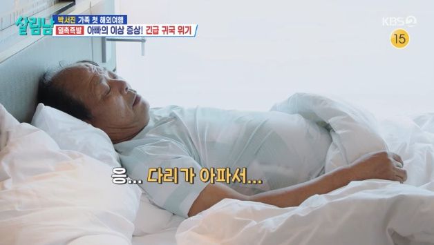 아버지는 "애들 하고 돌아다니면 나아진다. 기분 좋으니까"라고 말했지만, 결국 여행을 중단하고 박서진과 효정의 부축을 받고 숙소로 돌아갔다.