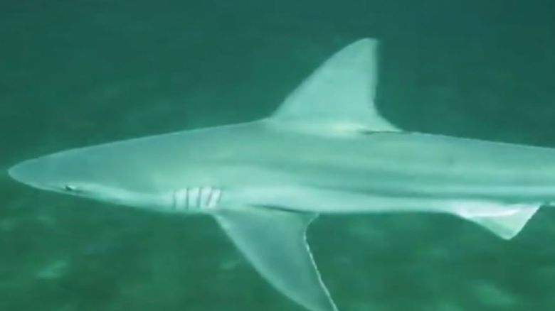 상어 개체를 식별하기 위한 식별표도 배지느러미에 무사히 명중시켰습니다.