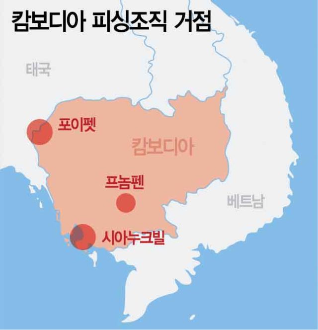 캄보디아는 국내총생산(GDP)의 절반가량인 연간 125억 달러(약 17조 원)가 보이스피싱 등으로 벌어들인 돈일 만큼 사실상 사기가 국가 기간 사업의 역할을 하고 있다. 캄보디아가 사기의 성지로 떠오른 것은 2022년 이후다. 당시 중국은 ‘일대일로’ 정책의 일환으로 캄보디아에 자본을 투입해 도로·항만·리조트·카지노 등을 건설했다. 특히 시아누크빌은 ?관광·카지노 특화 도시로 계획돼 중국 자본이 쏟아져 들어왔지만 코로나19 이후 중국 정부가 태도를 바꿔 도박을 금지하고 자본을 빼는 바람에 낙동강 오리알 신세가 됐다. 이에 이미 구축된 인프라를 노리고 범죄 조직이 들어와 사기를 사업화시키기 시작했다. 이 때문에 캄보디아 내 범죄 조직들이 다수 존재하는 도시들은 대부분 리조트나 카지노를 근거지로 삼고 있다. 시아누크빌의 경우 빅토리파라다이스리조트 등이 범죄 조직의 거점으로 활용되고 있다. 캄보디아 유력 정치인이나 경제계 거물, 중국계 캄보디아 부동산 그룹 소유주 등이 범죄단지 운영에 연관돼 있어 치안 당국이 단속을 하기는커녕 조직과 결탁하는 경우도 비일비재하다.