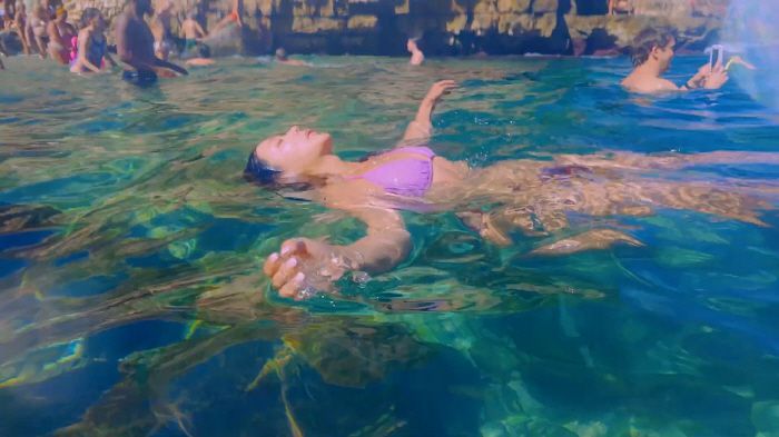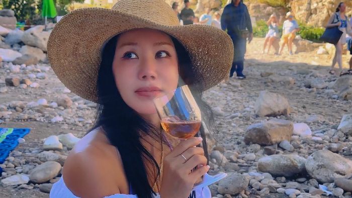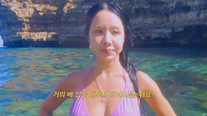 이곳에서 엄정화는 로제 와인 한 잔을 마신 후 곧장 비키니로 갈아입고 바다로 뛰어들었다. 그는 보라빛 비키니로 56세 답지 않은 군살 없는 몸매를 자랑하는 한편 에메랄드빛 바다를 헤치며 힐링을 만끽해 눈길을 끌었다.