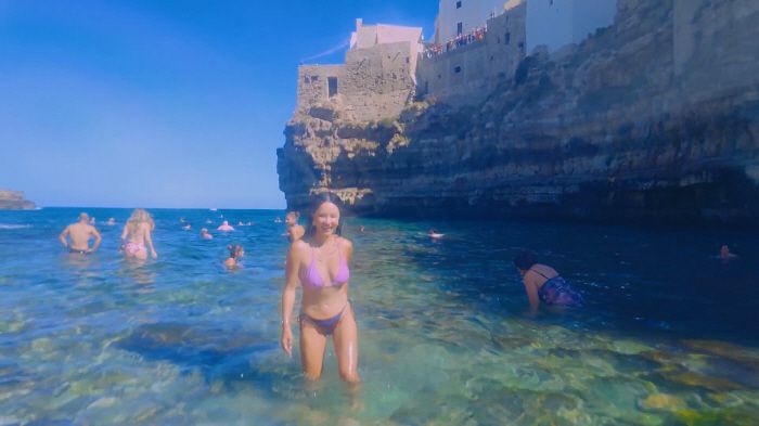 영상에서 엄정화는 인생 첫 이탈리아 남부, 풀리아를 여행하는 '브이로그'를 공개했다. 그는 2026년 이탈리아 프로젝트 촬영을 마치고 자유시간을 갖게 됐다. 이에 이탈리아 남부, 폴리냐노 아마레를 찾았다. 보르보니코 다리를 건너 해변으로 내려간 그는 절벽이 깎여 만든 모나킬레 해변에서 비키니로 갈아입었다. 아드리안해의 일부인 모나킬레 해변은 이탈리아에서 가장 아름다운 해변으로 꼽힌다.