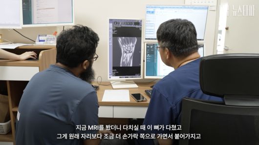 방글라데시 이주노동자 레이한은 지난 3월 경기도 포천의 한 공장에서 일하다 손등뼈가 골절되는 부당을 당해 수술을 앞두고 있다. 회사는 치료 대신 바로 일을 하라고 시켰고, 레이한의 산재 신청 요청도 거부했다. 회사 측의 반대에도 산재 신청을 한 레이한은 최근 '고용허가제 비자 연장 불가'를 통보받았다. 사진은 지난 9월, 고려대안암병원에서 의사로부터 자신의 상태에 대해 설명을 듣고 있는 장면.