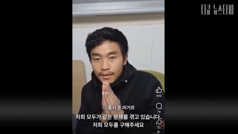 툴시는 용기를 내 작년 10월경 SNS에 도움을 요청하는 영상을 올렸다. 해당 영상엔 “저희 모두를 구해주세요”라며 두 손을 모으고 구조 요청을 하는 툴시의 모습이 담겼다. 하지만 이 영상은 널리 알려지지 않았다. 그 후로도 사장과 팀장의 괴롭힘은 계속됐다.