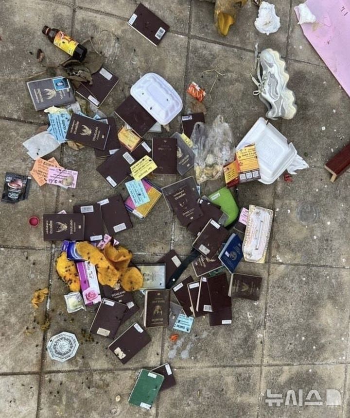 [서울=뉴시스] 캄보디아의 한 쓰레기통에서 외국인 여권이 다수 발견된 사진이 공개돼 충격을 주고 있다. (사진 = 온라인커뮤니티 캡처) 2025.10.12. |