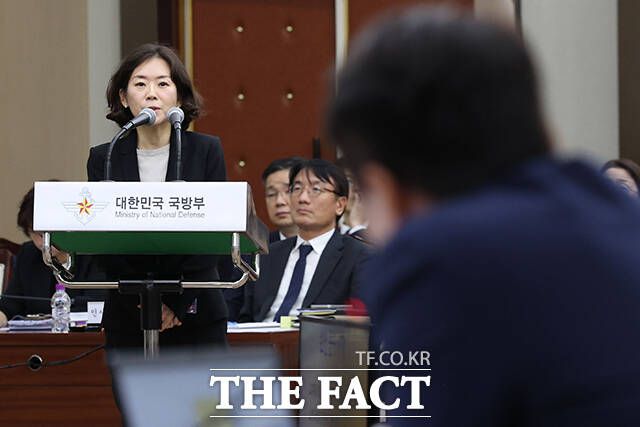 [더팩트ㅣ남윤호 기자] 황성혜 구글코리아 부사장이 13일 서울 용산구 국방부 청사에서 열린 국방위원회의 국방부 등에 대한 국정감사에 참고인으로 출석해 의원 질의에 답변하고 있다.