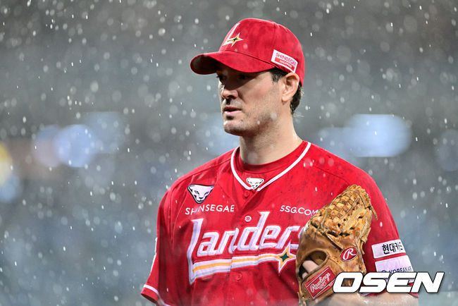 [사진]갑작스런 폭우로 철수하는 SSG 선발 드류 앤더슨