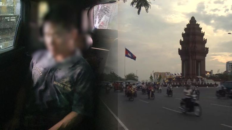 비가 추적추적 내리는 캄보디아 시하누크빌의 도로 위, 한 남성이 급히 차량 안으로 몸을 숨깁니다.