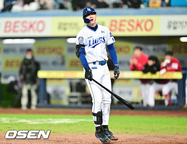5회말 1사 2루 삼성 구자욱이 17구 끝에 삼진아웃된뒤 아쉬워하고 있다. 2025.10.13 / soul1014@osen.co.kr
