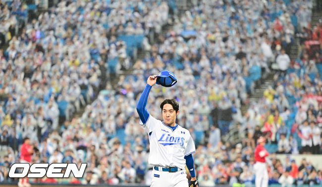 [OSEN=대구, 박준형 기자] 13일 대구 삼성라이온즈파크에서 ‘2025 신한 SOL뱅크 KBO리그’ 준플레이오프(5전 3선승제) 3차전 삼성 라이온즈와 SSG 랜더스의 경기가 열렸다 삼성은 원태인, 방문팀 SSG은 드류 앤더슨을 선발로 내세웠다. 7회초 삼성 선발투수 원태인이 교체되며 팬들에게 인사를 하고 있다. 2025.10.13 / soul1014@osen.co.kr 이 기사의 카테고리는 언론사의 분류를 따릅니다.0공유하기