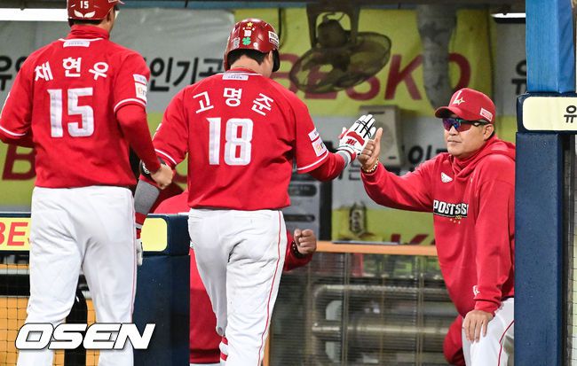 9회초 무사 1루 SSG 고명준이 2점 홈런을 날리고 이숭용 감독과 하이파이브를 하고 있다. 2025.10.13 / soul1014@osen.co.kr
