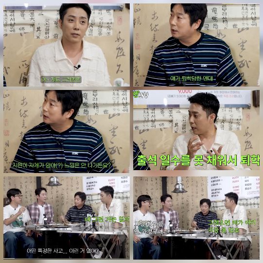 이에 은지원은 “강남도 공부 진짜 안 했나 보다”라며 웃음을 터뜨렸다. 이어 “나는 출석 일수를 못 채워서 퇴학당했다. 사고를 친 건 아니다. 그랬으면 여기 못 앉아 있다”고 설명했다. 이수근이 “양아치 느낌은 안 난다”고 말하자 현장은 폭소로 물들었다.