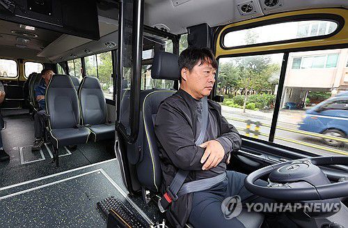 (서울=연합뉴스) 이진욱 기자 = 14일 서울 동대문구 동대문중학교 부근에서 자율주행버스가 운행하고 있다. 이날부터 운행을 시작한 동대문 자율주행버스 '동대문A01'은 장한평역에서 경희의료원까지 이어지는 왕복 15㎞ 구간, 총 23개 정류소를 운행한다. 2025.10.14