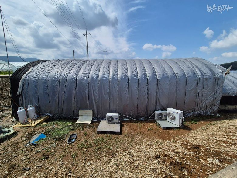 또 다른 캄보디아 출신 이주노동자 쑤(가명) 씨의 기숙사를 방문한 것은 지난 8월 말이었다. 아직 해가 지기 전인데도 검은 차양막과 두꺼운 회색 비닐로 뒤덮인 비닐하우스의 내부는 컴컴했다.