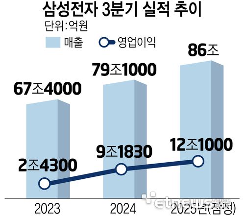 매출은 역대 처음으로 분기 기준 80조원을 돌파하며 역대 최대를 기록했다. 영업이익은 지난 해 2분기(10조4000억원) 이후 5분기 만에 10조원대를 회복했다. 3분기 영업이익은 2022년 2분기(14조 1000억) 이후 3년 만의 최대치다.
