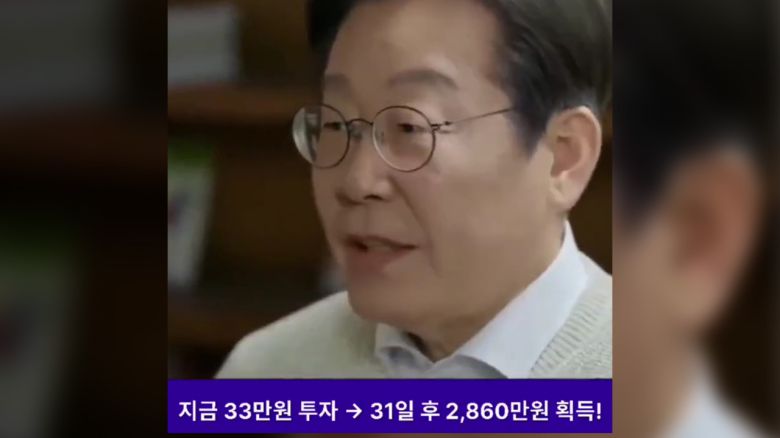 이어 이 대통령이 나와 "삶을 바꿀 기회"라며 "월 30만 원 투자 시 2천400만~3천만 원을 벌 수 있다고 보장한다"고 말합니다.