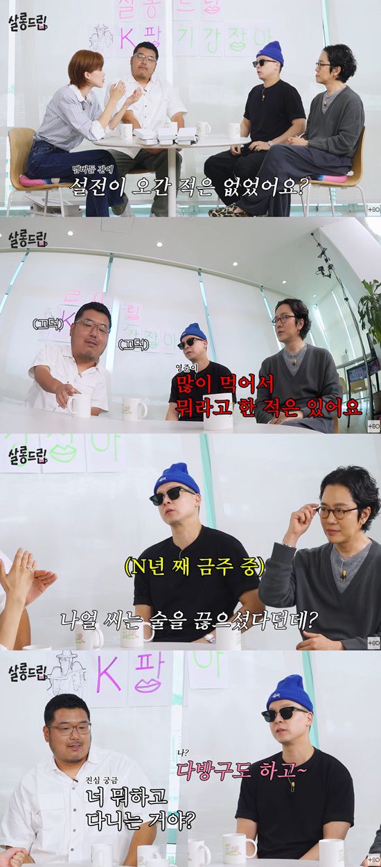 반면 나얼은 술을 끊었다고 밝혔다. 그는 “술자리를 안 간 지 오래됐다”며 “가끔 친구들과 ‘무궁화꽃이 피었습니다’, ‘다방구’ 같은 걸 한다”고 말했다. 이에 정엽은 “생각보다 미친X”이라며 놀라워했다.