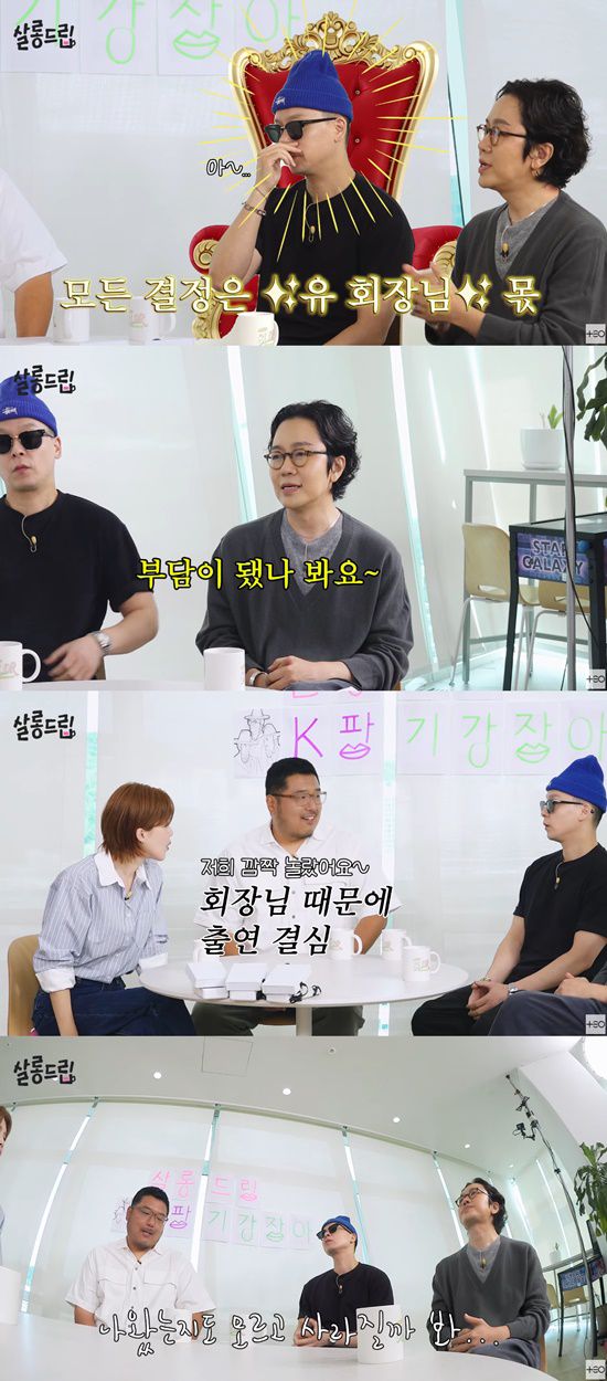 장도연이 “‘살롱드립’에 어떻게 출연하게 됐냐”고 묻자, 정엽은 “제가 브아솔 리더지만 사실상 나얼은 회장님이다. 유 회장이라고 부른다”며 “이번에도 큰 곳에서 공연하다 보니 부담이 됐는지 출연을 결심했다”고 답했다.