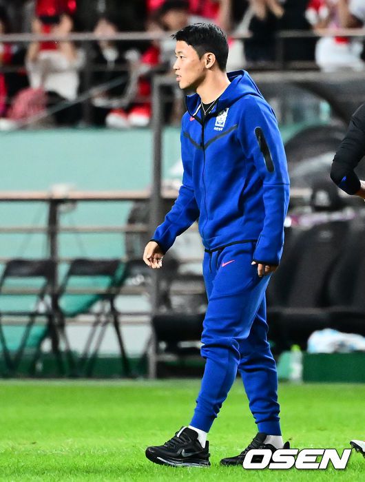 경기를 마치고 한국 황희찬이 동료선수들과 인사를 나누고 있다. 2025.10.14. /jpnews@osen.co.kr
