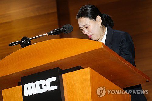 (서울=연합뉴스) 류효림 기자 = 직장 내 괴롭힘을 호소하며 숨진 MBC 기상캐스터 오요안나 씨의 어머니 장연미씨가 15일 서울 마포구 상암동 MBC 사옥에서 진행된 기자회견에서 발언하고 있다. 2025.10.15