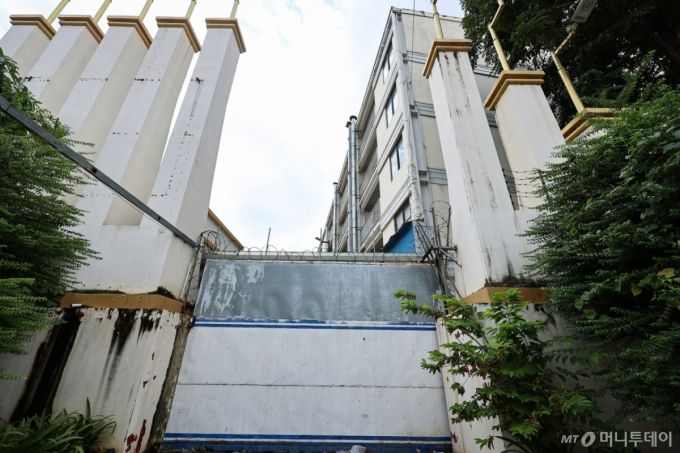 (프놈펜(캄보디아)=뉴스1) 김도우 기자 = 최근 캄보디아에서 한국인 대상 취업사기 및 감금 사건 등 각종 범죄에 연루되는 사례가 잇따르고 있다.  사진은 15일(현지시간) 캄보디아 프놈펜 주요 범죄 단지로 알려진 원구 단지.  이곳은 피싱 범죄 조직이 자리 잡고 한국인을 대상으로 한 감금, 강제 노동 등이 이뤄졌던 곳으로 현재는 캄보디아 당국의 단속으로 공실 상태이다. 2025.10.15/뉴스1  Copyright (C) 뉴스1. All rights reserved. 무단 전재 및 재배포,  AI학습 이용 금지.