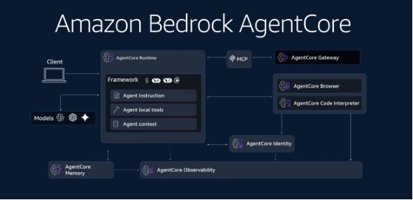 아마존 베드록 에이전트코어는 런타임, 메모리, 아이덴티티, 게이트웨이, 브라우저 툴, 코드 인터프리터, 옵저버빌리티 등 7개 구성 요소로 이뤄졌다. 완전 서버리스 방식의 런타임은 인프라 관리 없이 보안성을 제공하며 업계 최장인 8시간 세션을 지원한다. 메모리 기능은 장기 메모리 관리 기술로 멀티 에이전트의 장시간 워크플로우에 최적화됐다.