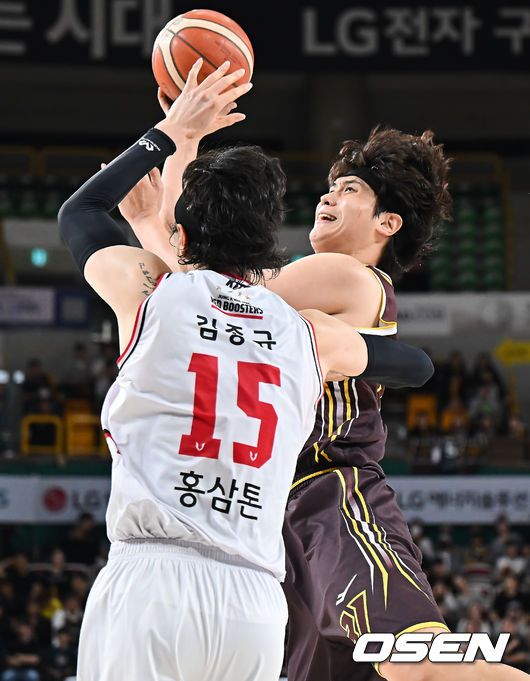 [OSEN=창원, 이석우 기자] 15일 창원 체육관에서 2025-2026 LG전자 프로농구 창원 LG와 안양 정관장의 경기가 열렸다. LG의 외곽을 책임지는 유기상이 2번째 4경기 연속 3점슛 5개+ 성공 기록에 도전한다. 창원 LG 박정현이 안양 정관장 김종규의 마크를 피해 골밑슛을 시도하고 있다. 2025.10.15 / foto0307@osen.co.kr 이 기사의 카테고리는 언론사의 분류를 따릅니다.0공유하기