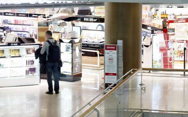 한 관광객이 인천국제공항 면세점을 둘러보고 있다. (사진=연합뉴스) |