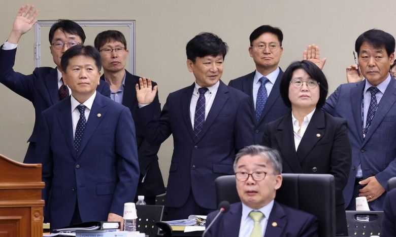 아무도 바로 손을 들지 않자 이 의원은 “아무도 안 드냐?”고 물었다. 이어 한 명이 손을 들자 이 의원은 “한 분뿐이냐?”고 했다. 이어 두 명이 더 들자 “두 분? 세 분?”이라고 이 의원은 말했다. 이 의원이 “이거 위증 들어갈 거예요”라고 강하게 말하자 손을 드는 간부들이 더 나왔고 이 의원은 “넷? 다섯?”까지 셌다. 유 위원장 뒤로 다섯 명가량이 손을 든 것이다.
