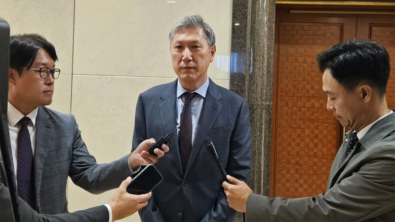 ▲ 노재헌 신임 주중대사가 16일 오후 중국 베이징 서우두공항에서 취재진과 이야기를 나누고 있다.