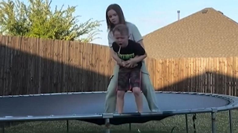 미국 텍사스주의 한 주택가 마당에서 남매가 트램펄린을 하며 놀고 있습니다.