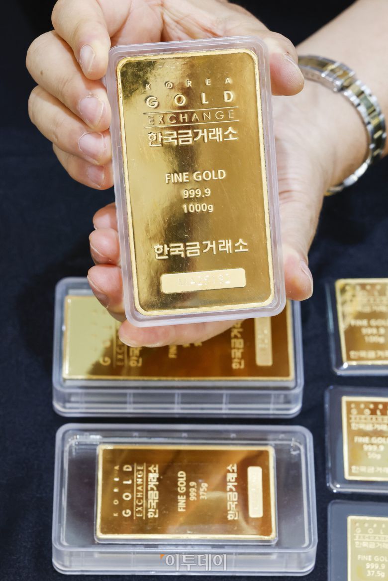 9일 서울 종로구 한국금거래소에서 관계자가 골드바를 정리하고 있다. 조현호 기자 hyunho@