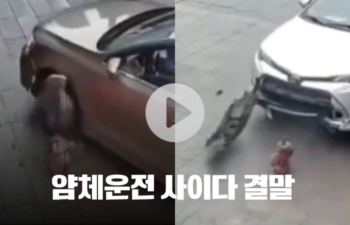 중국의 한 인도로 차량이 진입합니다. 그런데 갑자기 타이어가 터지고 차가 망가지는데요.