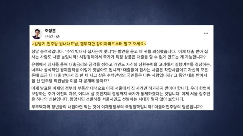 [김병기 / 더불어민주당 원내대표 (어제) : 수억, 수십억의 빚을 내서 집을 사게 하는 것이 맞습니까? 빚 없이도 집을 살 수 있는 시장을 만드는 게 맞다…]