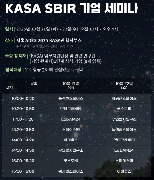 SBIR 기업 세미나 일정/사진제공=KASA 임무지원단 |