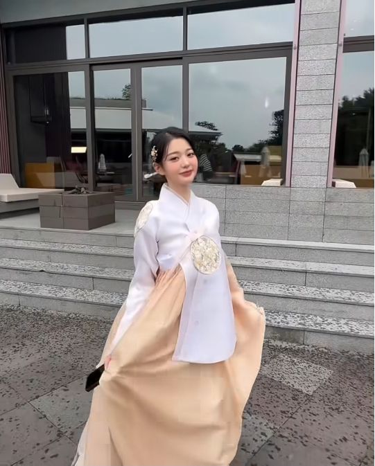 흰 저고리에 살구빛 치마, 머리엔 전통 비녀를 꽂은 모습. 단아하고도 우아했다. 그런데 팬들의 시선을 사로잡은 건 그녀의 미모보다 그 한 줄이었다.