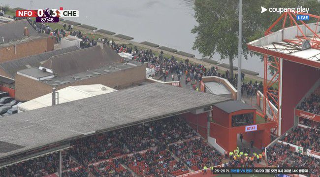 분노한 노팅엄 팬들은 후반 막바지 제임스의 득점이 나오자 경기장을 빠져나갔다. 경기 시작 때만 하더라도 가득 찼던 관중석은 어느새 곳곳이 비어있었고, 중계 카메라는 포스테코글루 감독의 뒤로 빠져나가는 관중들과 경기장 밖으로 나가서 걸어가는 팬들의 무리를 비췄다.