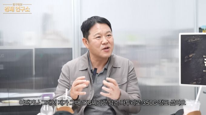이 영상에서 김구라는 "요즘 금이 난리다. 사실 내가 5년 전에 금 가격이 괜찮다고 해서 금 1㎏을 샀다. 당시 가격으로 1억원이었다. 부가세 10%까지 1억1000만원을 주고 샀다"고 말했다.