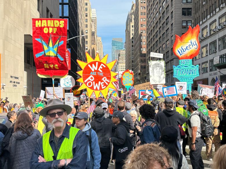 이날 미국 뉴욕, 워싱턴 DC, 시카고 등 50개주 2600여 곳에서 수백만 명이 참여한 시위가 동시다발적으로 열렸다. 시위대는 성별과 연령 관계 없이 다양했다. 경찰 추산 10만명이 참여한 뉴욕에서는 정오 무렵 대표 관광지인 타임스 스퀘어에서 남쪽 방향으로 시위대가 행진을 시작했다. 이날은 특히 ICE에 반대하는 목소리가 높았다. 브루클린에 살고 있는 제인 켈러씨는 “ICE는 탄산음료 마실 때 사용하는 것이지 난민들을 위한 것이 아니다”라면서 “뉴욕에는 ICE가 필요하지 않다”고 했다. 자신을 70대라고 밝힌 한 여성은 미국 ‘건국의 아버지’로 불리는 벤자민 프랭클린이 1787년 한 말이라면서 “이 나라는 당신이 지킬 수만 있다면 공화국이다”라고 했다.