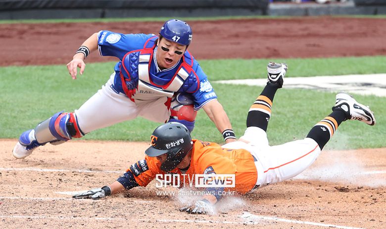 하주석의 우전안타 뒤 김태연이 등장해 좌전안타를 기록했다. 한화는 이후 손아섭의 투수 앞 내야안타로 1점을 만회했다. 김태연이 절묘한 슬라이딩으로 강민호의 태그를 피하면서 득점이 이뤄졌다. 한화는 계속된 2사 만루에서 문현빈의 3타점 2루타로 역전까지 성공했다.
