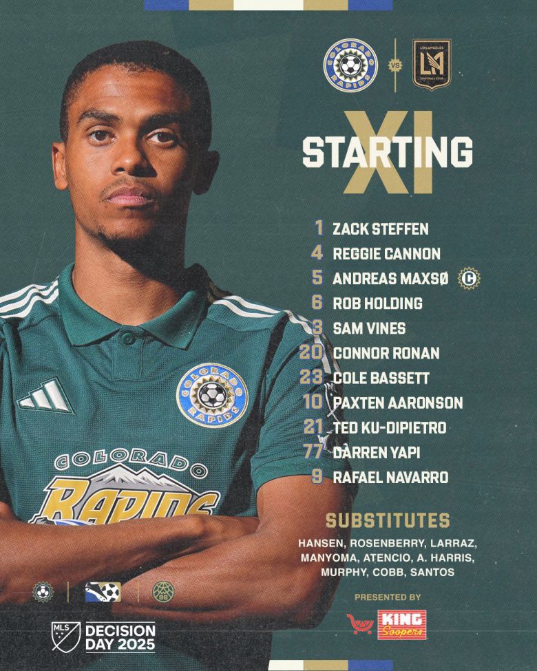 홈 팀 콜로라도는 4-2-3-1 전형을 사용했다. 잭 스테픈이 골키퍼 장갑을 꼈고, 샘 바인스, 롭 홀딩, 안드레아스 막쇠, 레지 캐넌이 백4를 구축했다. 콜 바셋과 코너 로난이 허리를 받쳤고, 시어도어 쿠-디피에트로, 팩스턴 아론슨, 대런 야피가 2선에서 최전방의 라파엘 나바로를 지원했다.