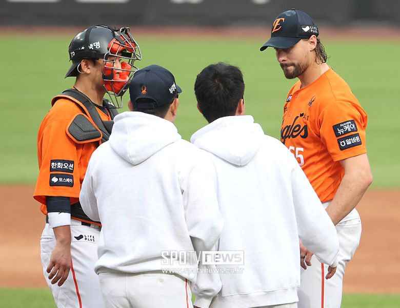하지만 디아즈에게 우익수 옆 2루타를 맞고 추가 실점했다. 디아즈에게 큼지막한 파울홈런을 맞은 뒤였는데 1B-2S의 유리한 카운트에서 장타를 얻어 맞았다. 1점을 더 내줘 역전을 허용하고 1사 2,3루에 몰렸다. 시련은 여기서 끝나지 않았다. 김영웅이 한화 전진 수비를 뚫어내는 2타점 중전 적시타를 치면서 순식간에 실점이 4점으로 불어났다.