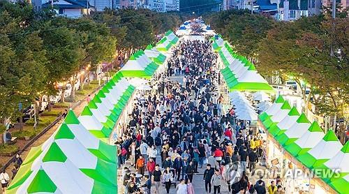 (구미=연합뉴스) 경북 구미시는 지역축제에 25만명이 찾아 성황을 이뤘다고 19일 밝혔다. 시는 앞서 기존에 분산됐던 10여개의 행사를 지난 18일부터 이틀간 함께 개최했다. 푸드페스티벌이 진행된 1.5km의 송정맛길, 청춘힙합페스티벌이 열린 동락공원, 독서문화축제가 열린 중앙도서관·형곡근린공원은 인파로 붐볐다. 구미에서는 오는 31일 'K-POP 콘서트', 11월 7~9일 '라면축제'도 열린다. 김장호 구미시장은 "방문객이 머무는 시간이 곧 지역의 활력이 되는 만큼, 많은 관광객이 구미를 찾도록 다양한 콘텐츠를 마련하겠다"고 말했다. 사진은 송정맛길에 몰린 인파. 2025.10.19 [구미시 제공. 재판매 및 DB 금지]