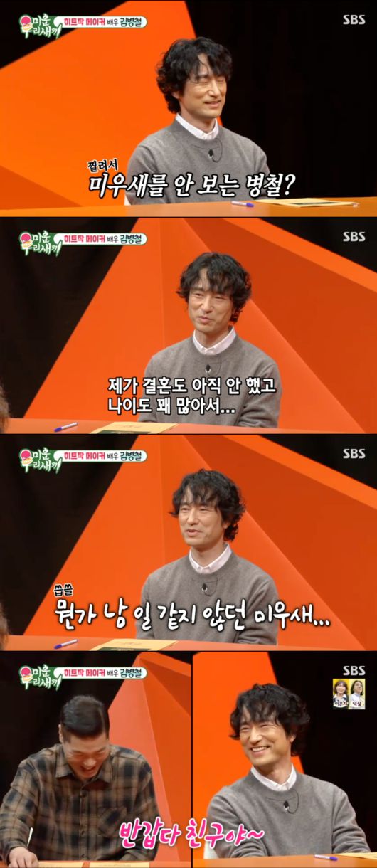 김병철은 "결혼은 아직 안 했고 나이도 꽤 많다"고 운을 떼며, "('미운 우리 새끼'를) 볼 때마다 부모님 생각이 나고 죄송한 마음이 들었다"고 말해 '미우새' 시청 후 찔렸다고 고백했다. 그는 MC 서장훈과 동갑이라는 사실을 밝히며 74년생 미혼임을 강조했다.