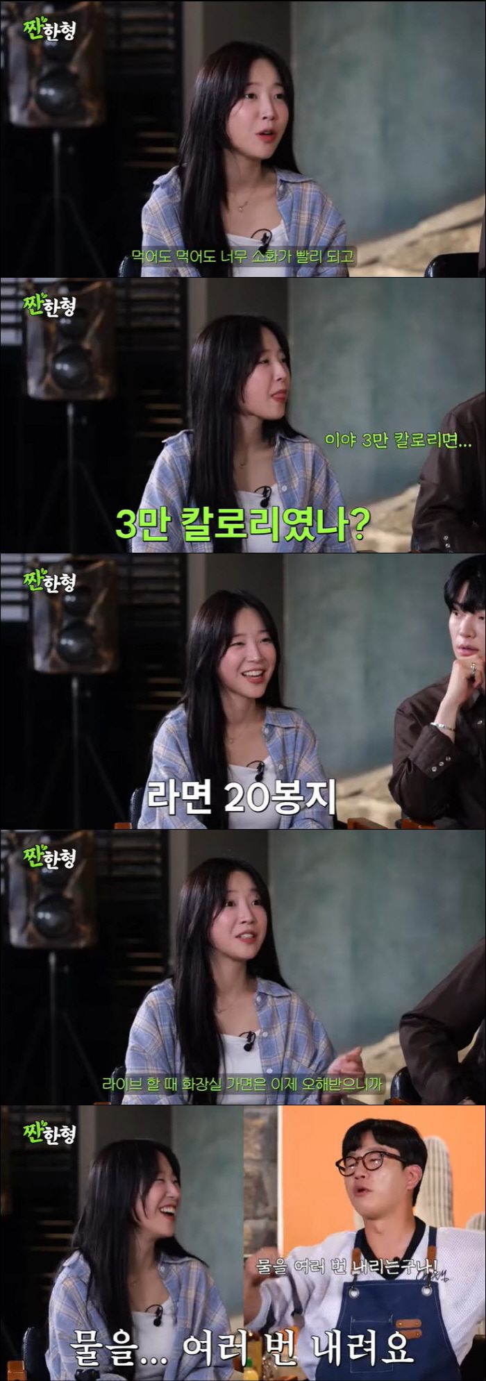 이야기 도중 정호철은 "실례되는 질문일 수 있지만 화장실가면 3만 칼로리가 다 나오는 편이냐"고 조심스럽게 물었고 쯔양은 "물을 여러 번 내린다"고 답했다.