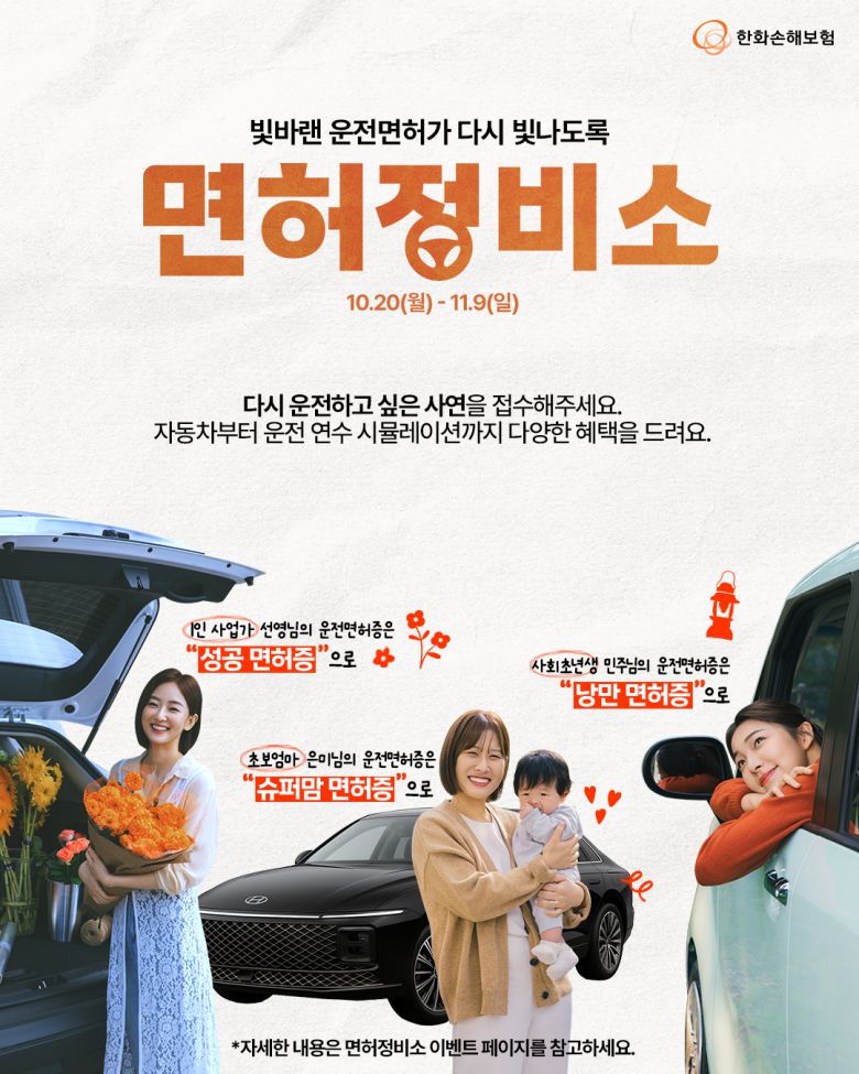 한화손보는 10월 20일부터 11월 9일까지 면허는 있으나 각기 다른 이유로 운전을 하지 않는 여성 운전자의 운전 복귀를 응원하고, 재도전에 필요한 실질적인 혜택을 제공하는 ‘면허정비소’ 캠페인을 진행한다고 밝혔다.