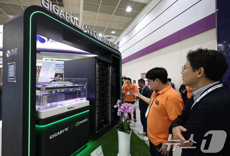(서울=뉴스1) 구윤성 기자 = 21일 서울 강남구 코엑스에서 열린 '2025 한국전자전(KES)'에서 참관객들이 인공지능(AI) 서버를 살펴보고 있다. 한국판 CES로 불리는 한국전자전은 오는 24일까지 역대 최대 규모인 530개 기업(1320개 부스)이 참여해 첨단 제품과 기술을 선보인다. 2025.10.21/뉴스1