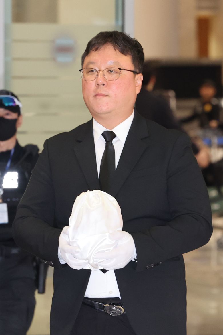 캄보디아 범죄 단지에서 고문 후 살해된 20대 대학생 박모씨의 유해가 21일 인천국제공항을 통해 송환되고 있다. 박씨의 시신을 화장한 현지 불교 사원에 한국인 시신 3구가 더 있다는 보도가 나왔다.[연합]